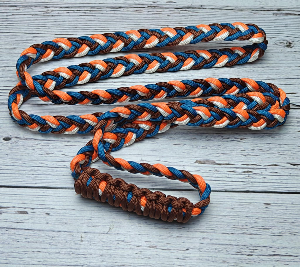 This striking Carolina Blue, White, Brown & Orange Neck Rope is engineered for fearless riders tackling liberty and tackless work. Measuring 54" overall, it provides the perfect length for responsive communication and control. Crafted from rugged, washable materials built to endure intense training sessions and challenging conditions, this rope refuses to break under pressure. Own your riding style with a neck rope that's as bold and uncompromising as your horsemanship.