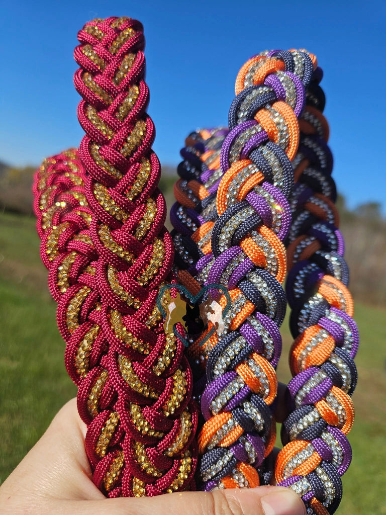 Elevate your riding experience with Custom BLING Adjustable Riding Reins—where brilliance meets functionality. The signature BLING strand running through the center of each braid captures light in ways static photos simply cannot convey, delivering a stunning sparkle that turns heads in the arena and on the trail. You control the aesthetic by selecting your preferred colors for the outer braids while the luminous center strand becomes your statement piece. Built with adjustable sizing for a secure, comfortable fit on every ride, these reins prove that superior style and performance go hand in hand. Make your equipment as exceptional as your horsemanship.