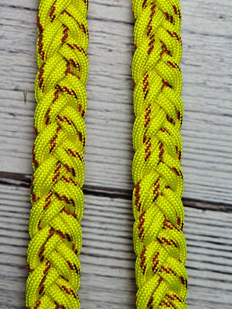Fast Pitch Adjustable Riding Reins deliver bold control with eye-catching style. Measuring 7.5 feet long and 3/4" wide, these reins command attention in vibrant yellow and red. Built for riders who refuse to blend in, they're fully washable for easy maintenance after every adventure. Perfect for training, trail riding, or making a statement in the arena. Adjustable design ensures a custom fit for your riding style.