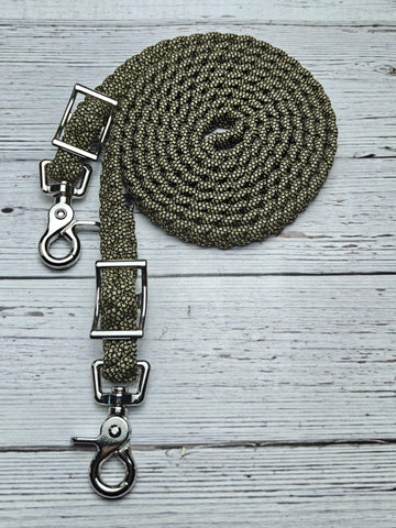 These hand-braided riding reins deliver bold style with serious durability. Stretching 7.5 feet in overall length and crafted at 3/4" wide, they're built to handle demanding rides while maintaining their shape. The adjustable design adapts to your needs, and the washable construction keeps them looking sharp through countless adventures. Engineered for riders who refuse to compromise on quality or attitude.
