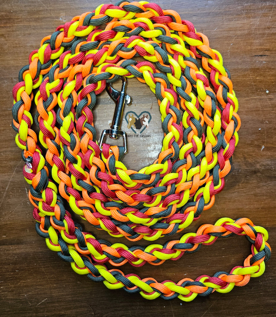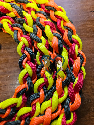 This Hot Fire dog leash is a must-have for any pet owner! Combining 100% USA made paracord and handmade durability, it's strong enough to handle active doggos. Not to mention, its bright colors will suit any pup's style. Approximately 6 feet in overall length.
