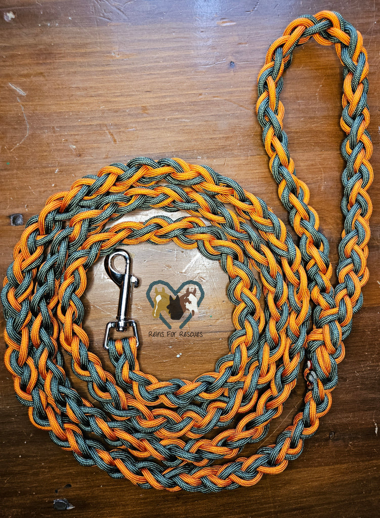 Introducing the International Orange & Olive Drab Dog Leash – strong, durable, and hand braided with 100% USA paracord. It's washable and measures approximately 6 feet in length, providing extra versatility and flexibility. Perfect for canine adventurers.