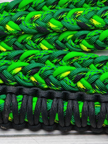 Gecko, Green with Black X & Mint Neck Rope Are you a green enthusiast ready to elevate your riding game? This vibrant neck rope is your new best friend for tackless and liberty sessions. It's as eye-catching as it is functional. Built tough and washable for easy care, this approximately 54" rope gives you the length and durability you need. Ride in style and comfort—because your horse deserves a handler who looks good doing it.
