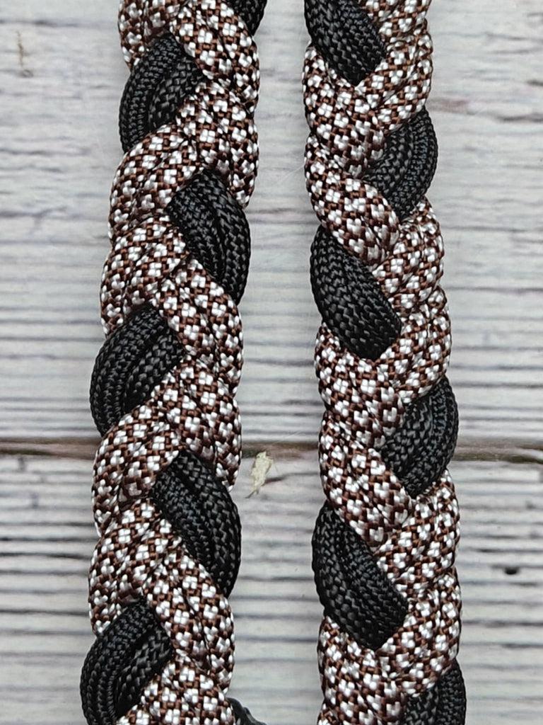 White Diamonds & Black Adjustable Reins represent refined craftsmanship for the discerning rider. Spanning approximately 7.5 feet with a substantial 3/4" width, these reins deliver the tactile feedback and control that elevate your horsemanship. The generous width distributes pressure with elegance, fostering nuanced communication with your mount. Engineered from resilient, washable USA-made paracord, they maintain their integrity through seasons of dedicated use and repeated cleaning. The sophisticated interplay of white diamonds against deep black creates an unmistakable presence—a statement piece that reflects your commitment to excellence. Whether schooling or competing, these reins embody both functional superiority and understated luxury.