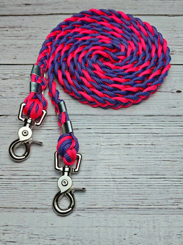 Affordable hand-braided reins crafted by our volunteers using 100% USA-made paracord. These basic loop reins measure approximately 7.5 feet in length, offering a practical choice for riders returning to the saddle or looking to expand their tack collection. Soft and comfortable in hand while delivering reliable strength during rides. Machine washable for easy care and maintenance.